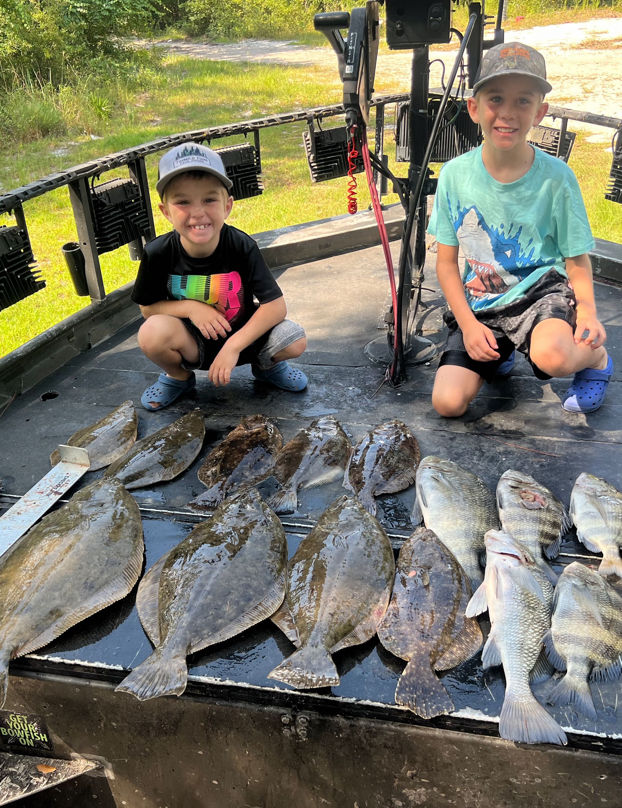 Sheepshead: Known for their human-like teeth and striking black and white stripes, sheepshead are a unique catch. They're typically found around structures like pilings or oyster beds, offering a fun challenge for bowfishers.